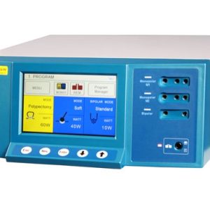 Electrobisturí multipropósito de 300 W con modos monopolares y bipolares, sistema de seguridad REM y diseño robusto. Ideal para cirugía general, plástica, dermatológica y procedimientos ambulatorios.